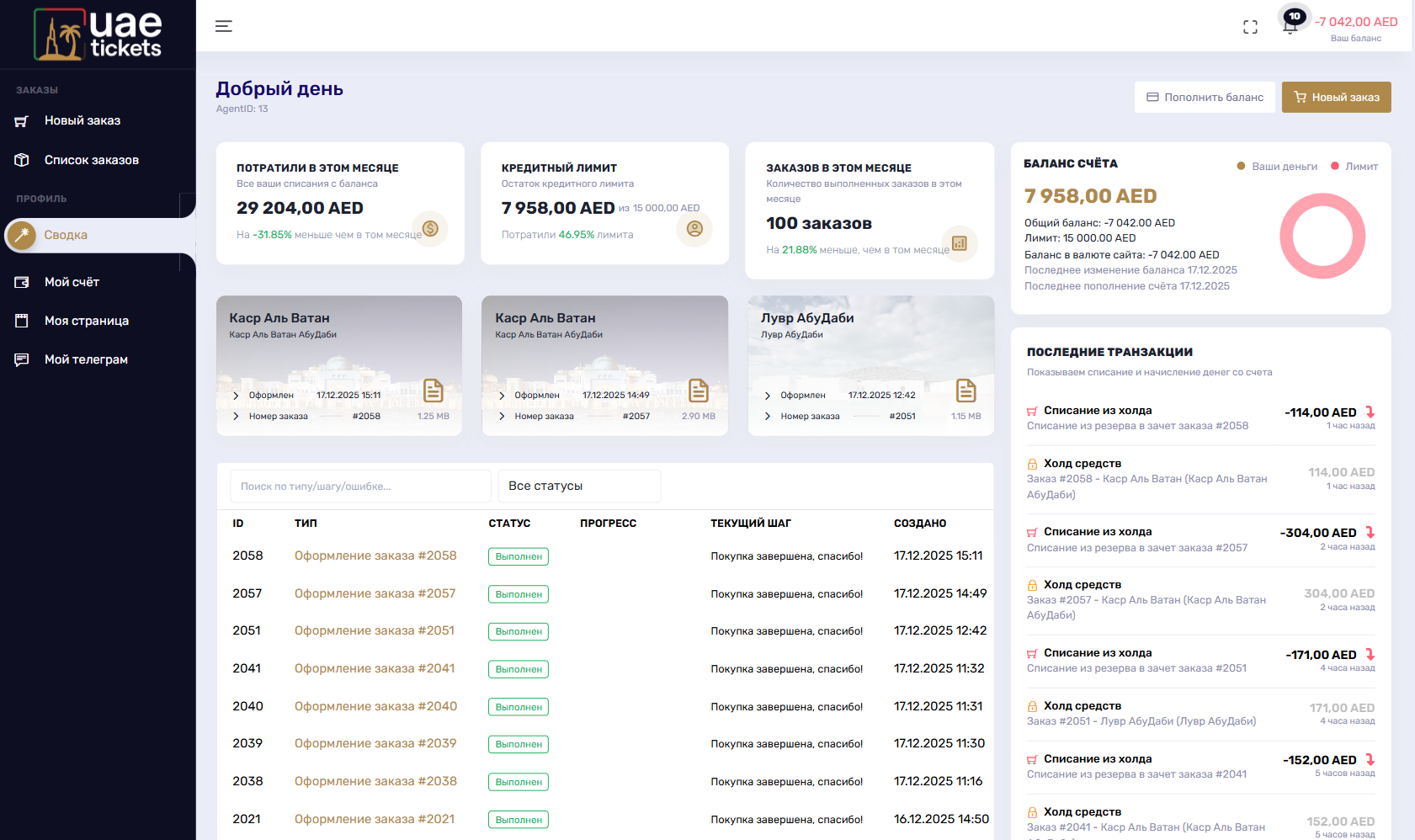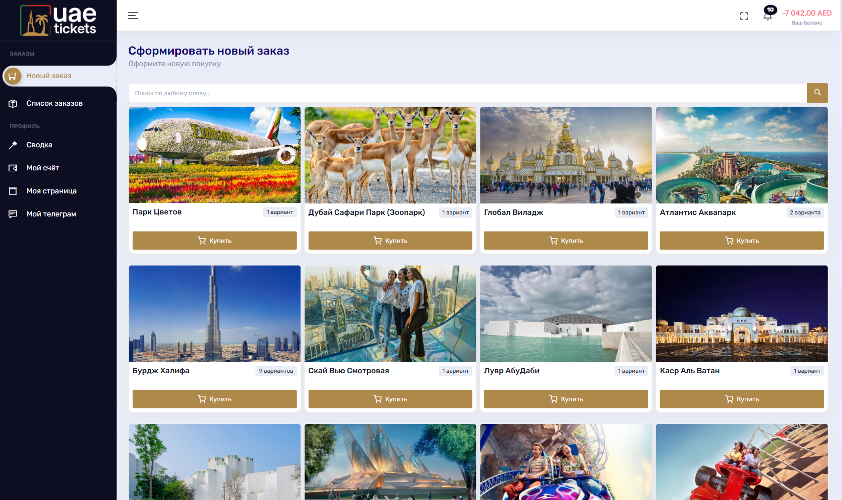 Удобная платформа для покупки туров, билетов в ОАЭ с моментальной доставкой, поддержкой и удобный интерфейсом.